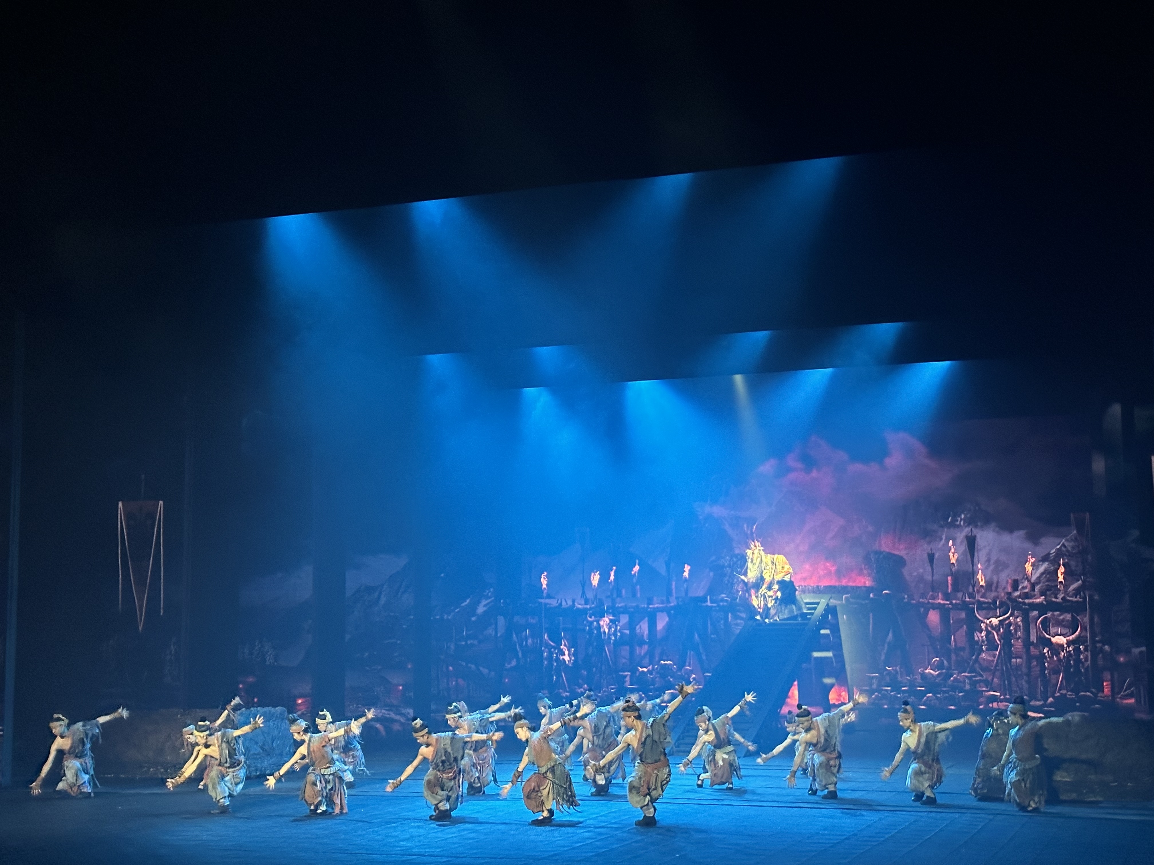 最讓我們期待的當屬是《炭河千古情》大型演出,《炭河千古情》以西周王朝為背景,以國之重器“四羊方尊”的傳奇故事為主線,再現了一場蕩氣回腸的“千年之戀”。該演出分為《在河之洲》《炭河絕戀》《妲己艷舞》《牧野之戰》《愛在寧鄉》五部分。靈兒為了拯救愛人和周國的子民,替夫代祭,上演凄美纏綿的炭河絕戀;牧野之戰姜子牙從天飛下救武王,商紂王窮兵黷武,最后兵敗自焚,商朝滅亡。演出與歷史結合,科技賦能舞美、燈光,讓人置身其中、流連忘返。 而后的實景體驗劇《大地震》高度還原了汶川大地震的慘況以及災后救援的過程,深刻、生動地詮釋了“一方有難、八方支援”的民族情懷。在演出開始前,導演現場招募群眾演員,讓大家沉浸式參與地震救災演出,我們部門四位小伙伴有幸被選中,對于此次參演,其中一位小伙伴表示:“表演時可以切身體會到地震帶來的恐懼,更能感受到愛的力量,非常震撼!”