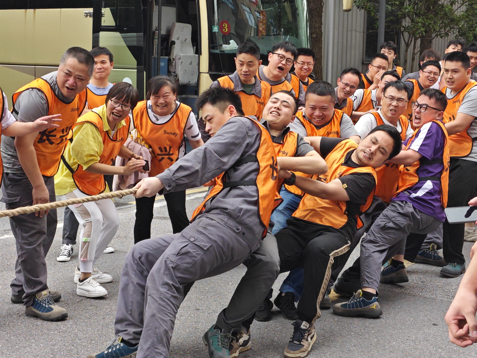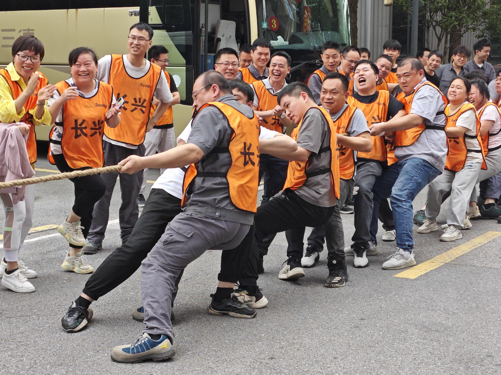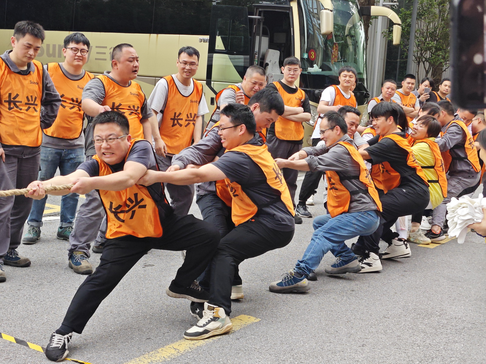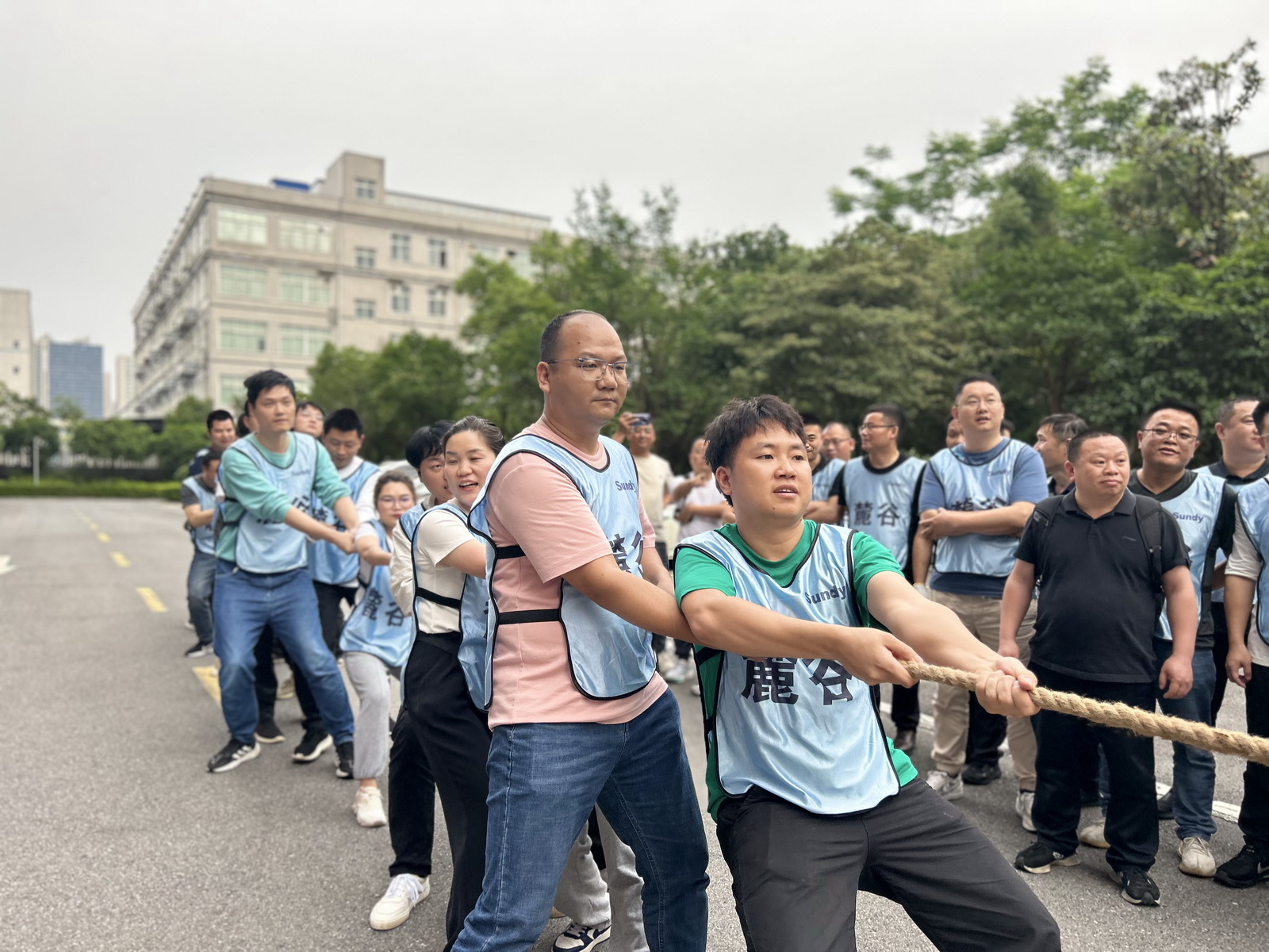 5月8日下午,由三德科技工會委員會組織的“凝‘繩’聚力,‘三德杯’首屆拔河比賽”火熱開賽。此次拔河比賽按園區劃分為長興隊和麓谷隊,每隊設置3組,每組15人(其中3名女選手),采取三局兩勝制。報名啟動之時,各個部門踴躍報名,積極組隊,鉚足勁展開battle。 賽場上,各組早已陳兵列陣,摩拳擦掌,躍躍欲試。“1、2、3,開始!”隨著裁判員一聲哨響,凝“繩”聚力,拔河比賽”正式開始。 參賽隊員們個個精神抖擻,紛紛使出“洪荒之力”,展開激烈角逐。大家咬緊牙關、緊握繩子、降低重心,身體后傾,使出全身力氣向后拉,他們全力以赴為團隊榮譽而戰,表現出了絕佳的團隊協作和拼搏向上的精神。 場外,隊友們和啦啦隊高聲助威吶喊,此起彼伏,現場氣氛熱烈,熱鬧非凡。經過3輪激烈的比拼,最終長興隊獲得勝利。 力拔山兮氣蓋世,三德健兒展英姿,“三德杯”首屆拔河比賽圓滿成功。一根繩擰出了齊心協力的團隊,大家收獲快樂的同時也感受到了團結帶來的力量。未來,三德科技工會根據實際情況還將組織不同的活動,為繁忙的工作增添不一樣的樂趣。